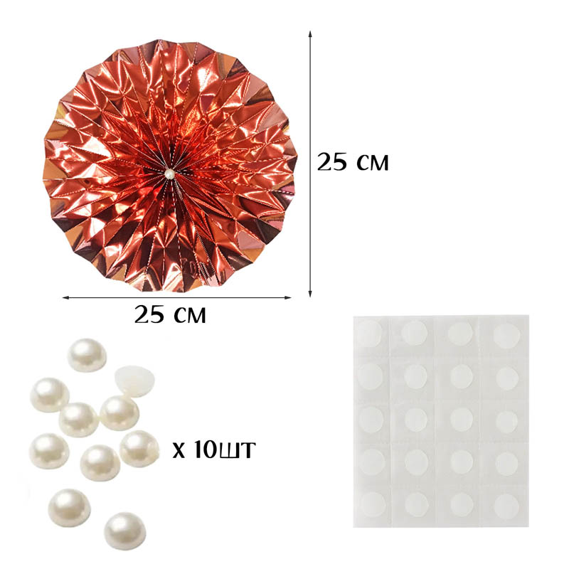 Фанты фольгированные с жемчужиной НАБОР 10шт х 25см, розовое золото