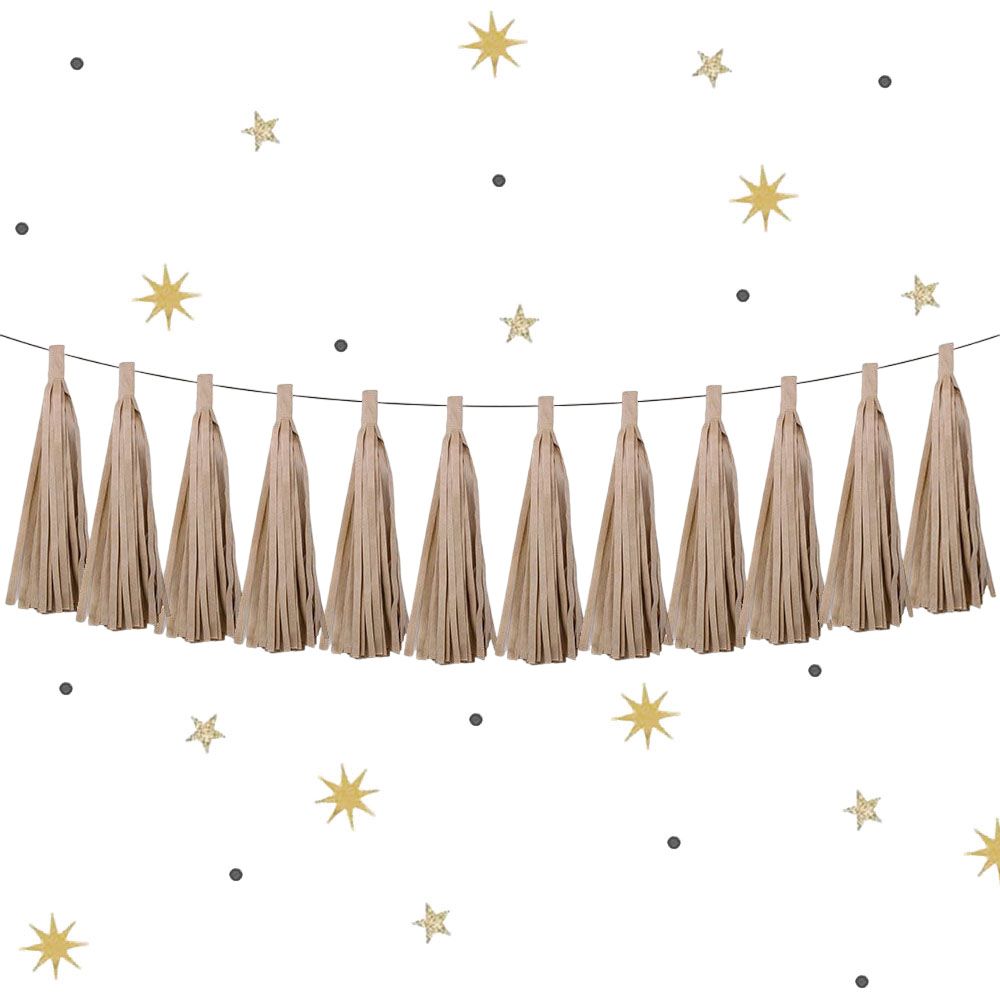 Гирлянда тассел 12 кисточек по 5 листов, латте