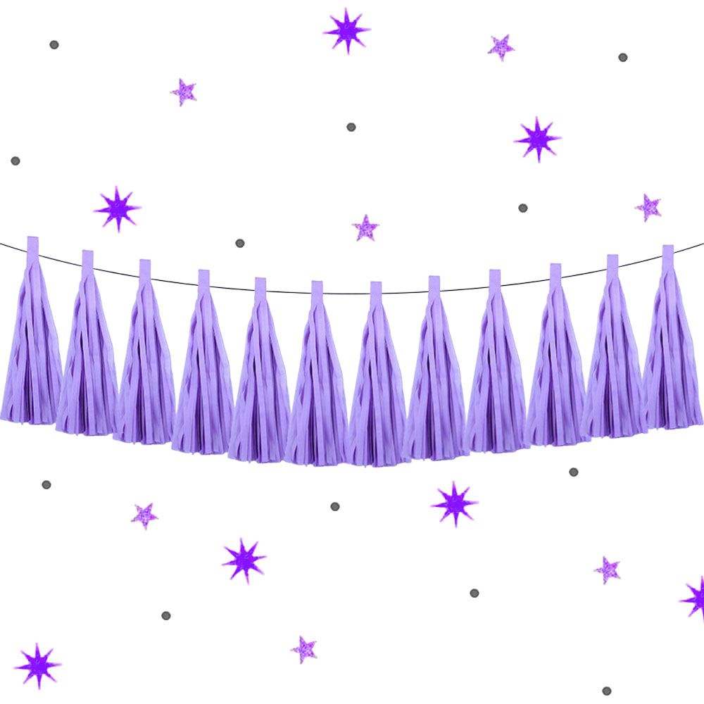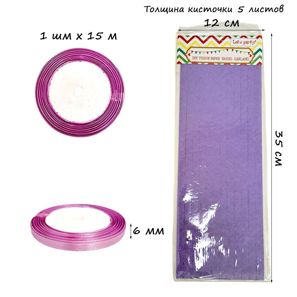 Гирлянда тассел 12 кисточек по 5 листов, светло-сиреневый