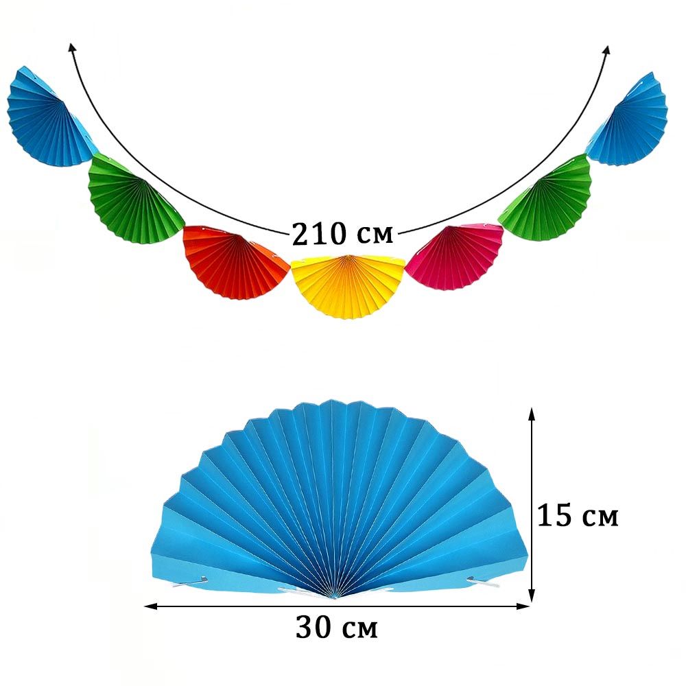 Гирлянда «Веера» — эффектное украшение для праздников, фотозон и интерьера. Лёгкая бумажная конструкция позволяет быстро оформить пространство и отрегулировать расположение элементов под ваши задачи.