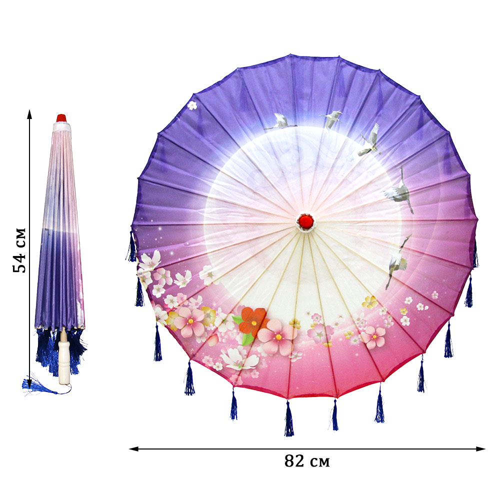 Китайский тканевый зонтик цветочный с кисточками 82х54см, №4