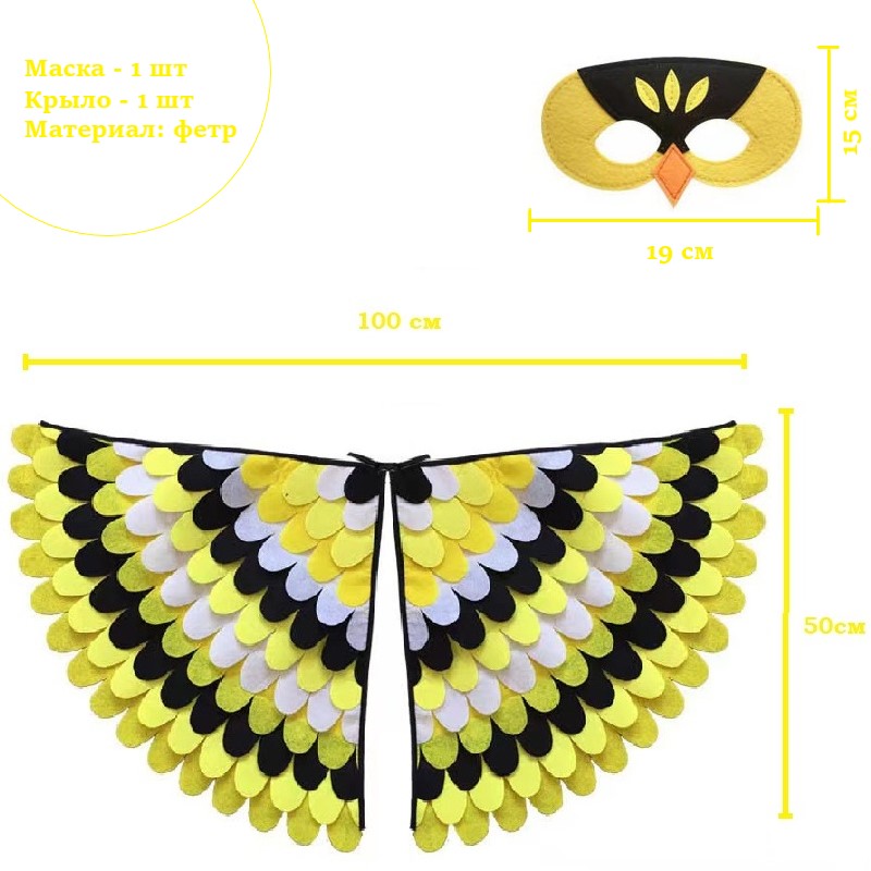 Комплект костюмов с крыльями из 2 предметов (маска + крыло). Применимый возраст: дети от 3 до 8 лет.