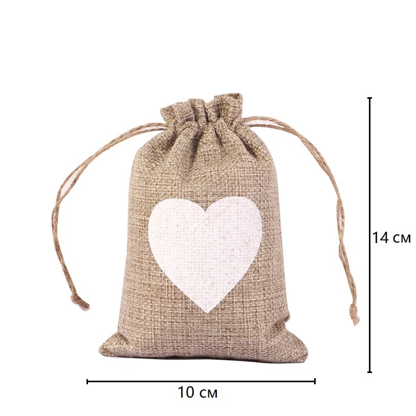 Стильный и оригинальный вариант для подарочной упаковки и хранения небольших предметов. Натуральная текстура мешковины придаёт изделию рустикальный, уютный вид, а сердечный мотив делает его особенно подходящим для подарков с душой.