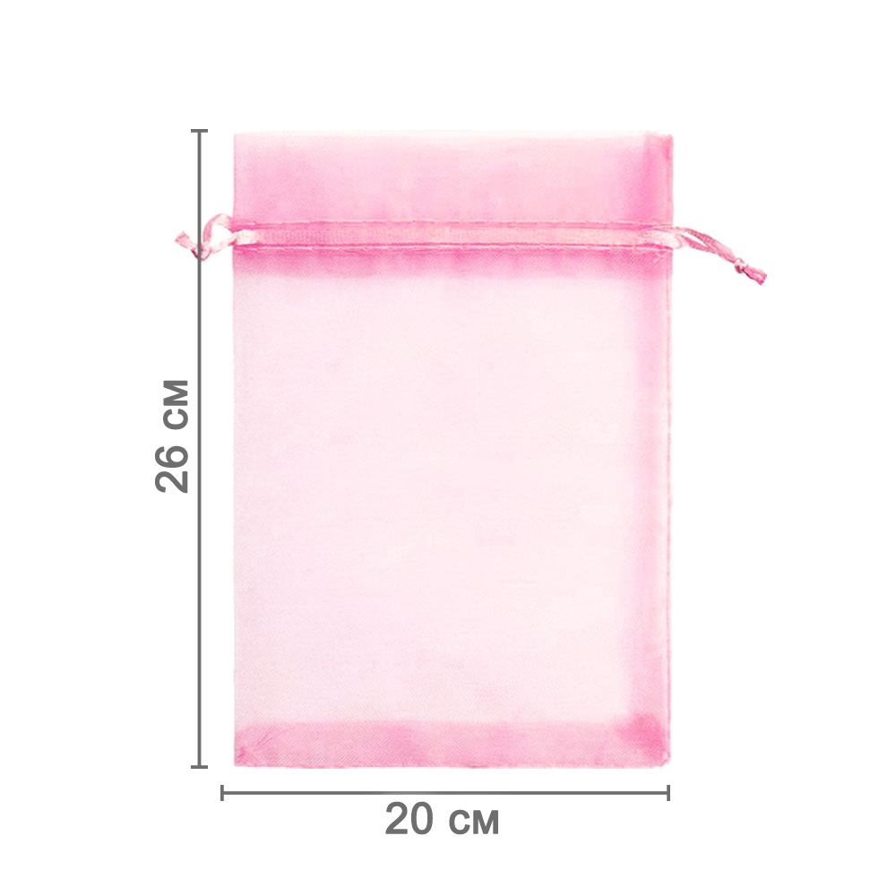Мешочек из органзы 20 х 26 см — стильный аксессуар для упаковки средних и крупных предметов. Полупрозрачная ткань подчёркивает содержимое и придаёт аккуратный вид.
