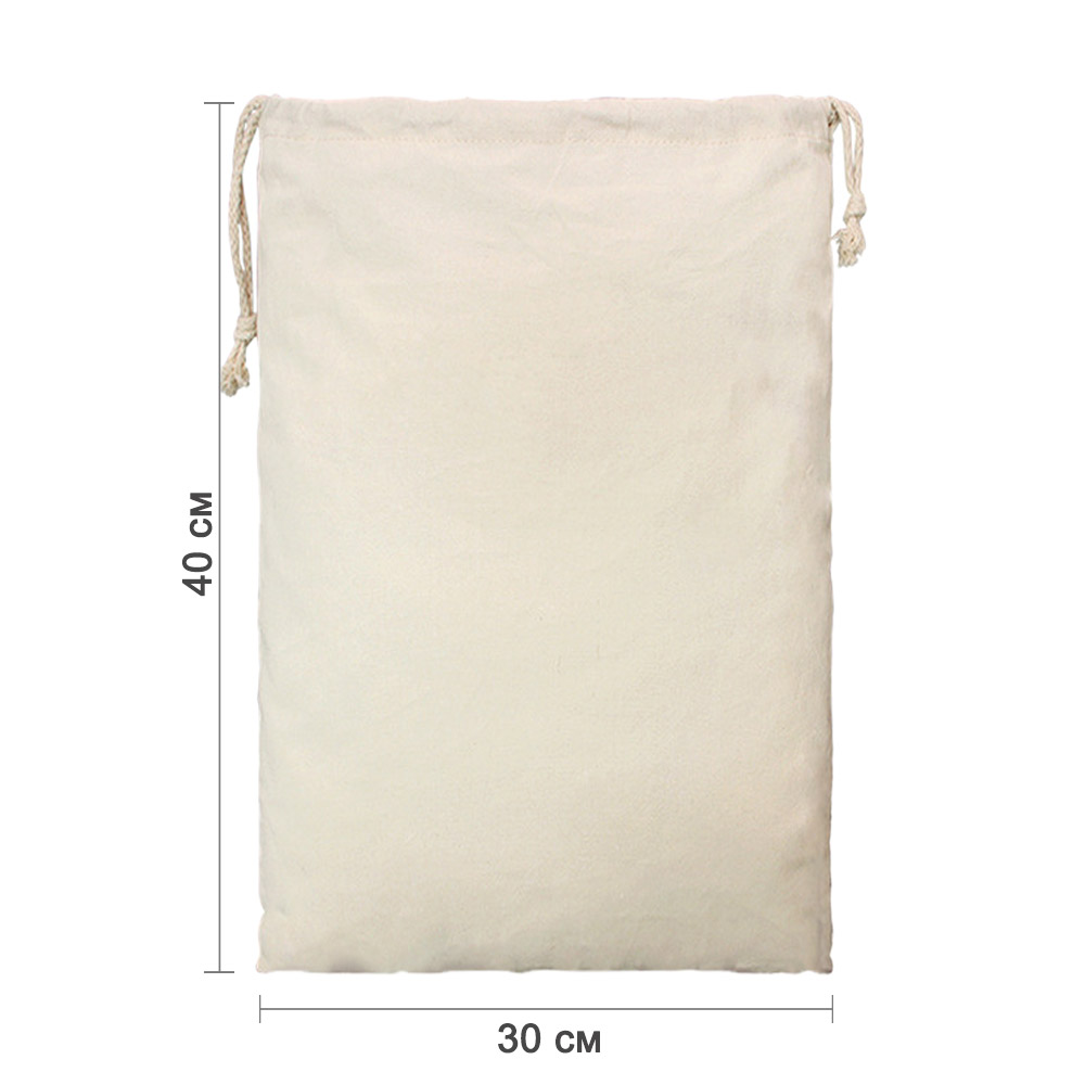 Мешочек из хлопка 30×40 см — универсальная упаковка для подарков, хранения и творчества. Натуральный хлопковый материал приятен на ощупь и подходит для украшений, сувениров, косметики, сладостей и других мелочей. Лаконичный дизайн делает мешочек удобным решением как для подарочной упаковки, так и для повседневного использования.