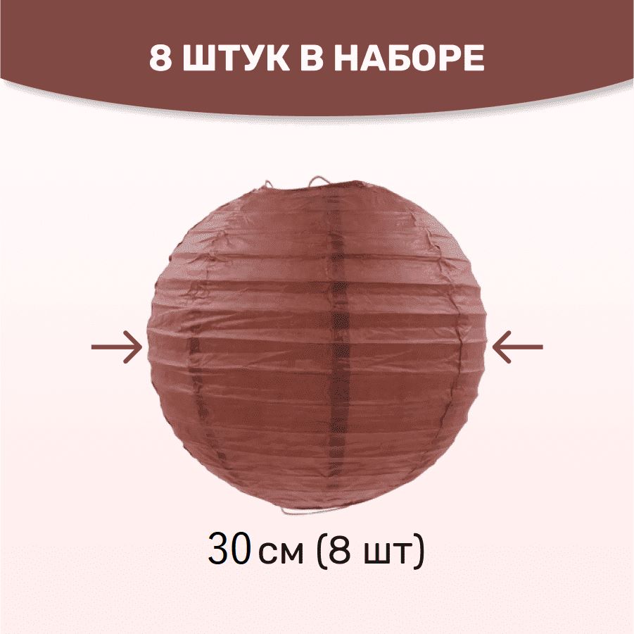 Комплект подвесные фонарики 30 см х 8 шт, коричневый