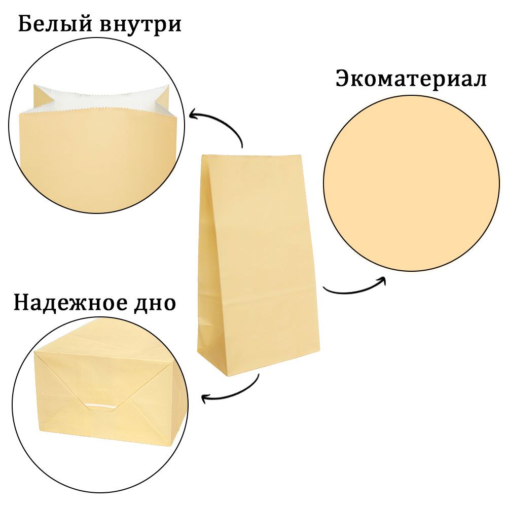 Подарочный пакет из крафтовой бумаги пастельного оттенка с белыми бумажными ручками и белой внутренней стороной.