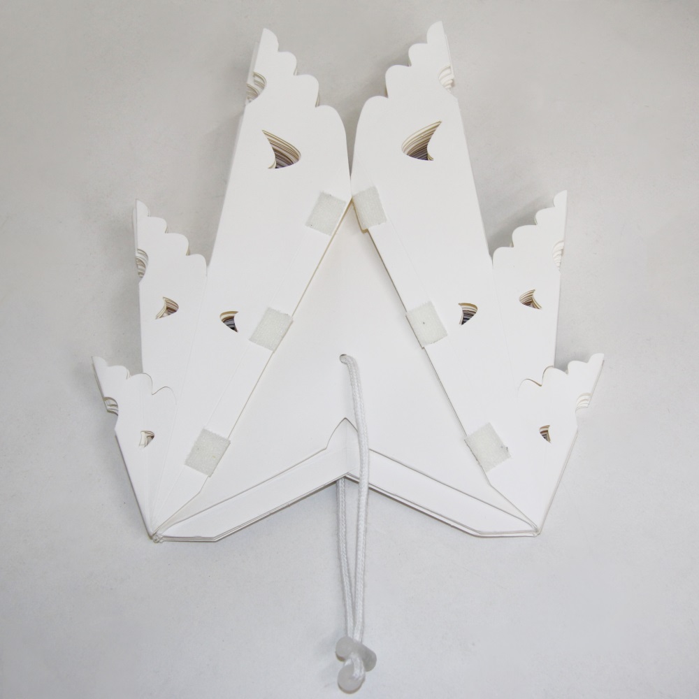 Снежинка на липучках размером 45 см, белого цвета, изготовлена из высококачественной бумаги.